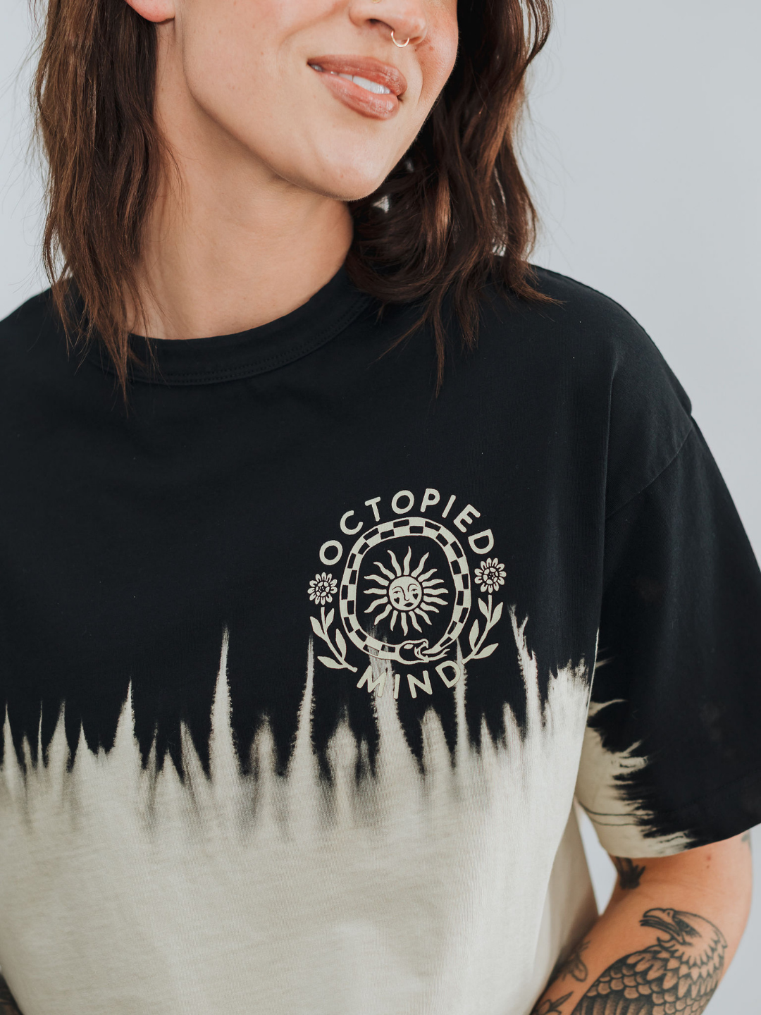 While travelling through Nicaragua, I stumbled across a small surf shop filled with hand-bleached, tie-dyed pieces. Every item felt raw, imperfect, and alive. That moment stuck with me. It was the first time I realized clothing could feel personal, altered by hand, and shaped by place. This tee is a nod to that spark — the beginning of experimenting with garments, altering them, and ultimately the desire to build something of my own. - Jill